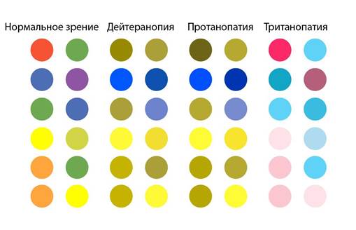 - տրիտանոմալիա («կապույտ» ընկալիչի հետ կապված անոմալիա):